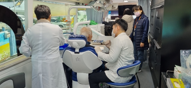 ![]() ‘전남 건강버스’에서 구강검진을 받는 모습 |