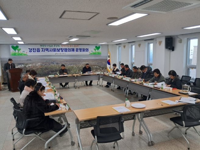 ![]() 강진읍장과 강진읍지역사회보장협의체 위원들이 2024년 첫 정기회의를 하고 있다. |