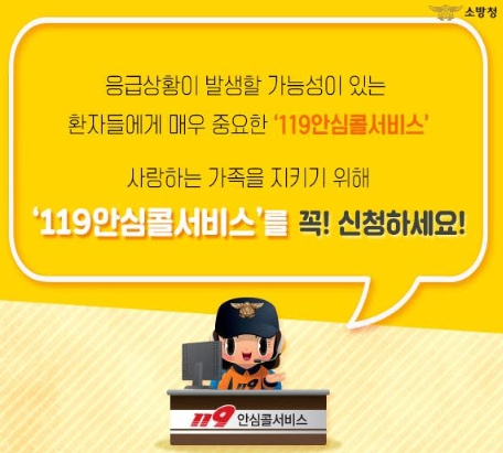 ‘119안심콜 서비스’란 사전에 환자의 지병, 복용중인 약 등 정보를 등록하면 응급상황 발생 시 119로 신고할 경우 출동 구급대원이 등록된 정보를 미리 알고 신속하고 정확한 응급처치를 제공하는 맞춤형 서비스이다.