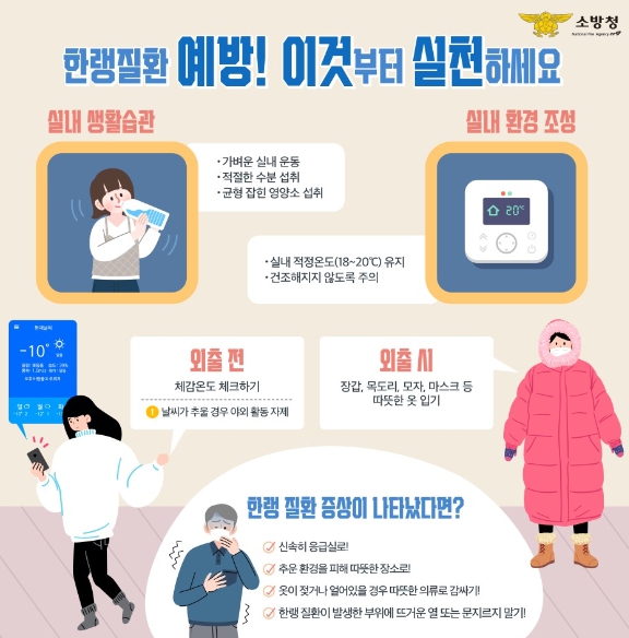 박지영 예방안전과장은 “한파는 막을 수 없지만 한랭질환은 충분히 예방할 수 있다”며 “요즘같이 한파가 계속되는 날에는 한랭질환 예방수칙을 반드시 준수하고, 한랭질환 발생 시에는 신속히 119에 신고해달라”고 전했다.