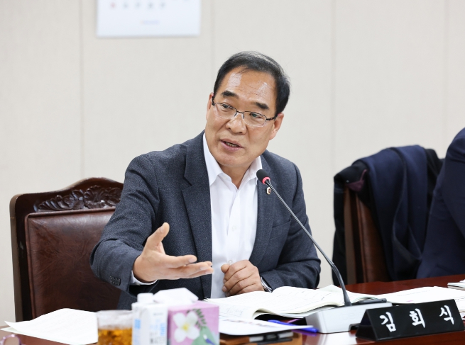 ![]() 전라남도의회 김회식 의원이 지난 23일 보건복지국 업무보고에서 질의하고 있다. |