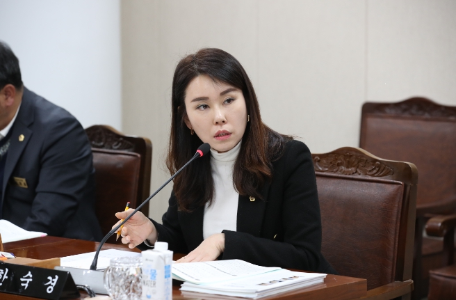 ![]() 지난 24일 한숙경 의원이 2024년도 전남신용보증재단 소관 업무보고에서 현안 질의를 하고 있다. |