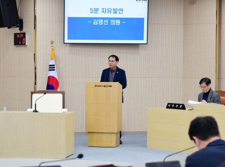 끝으로 “구청은 행정의 중심지이기에 안전 문제에 더욱 관심을 기울여야 한다”며 “청사 주변의 재조성을 통해 안전한 보행 환경을 마련하고 시민과 직원을 위한 쉼터로 활용해 주길 바란다”고 요청하며 5분 자유발언을 마쳤다.