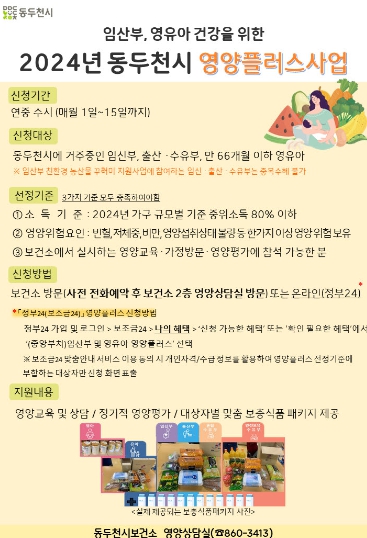 ![]() 동두천시 보건소, 2024년 영양플러스사업 대상자 상시 모집 |