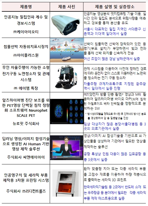 이외에도, 생성형 AI, 3D 프린팅 기술 등 첨단 기술을 적용한 혁신제품도 우선하여 선정했다.