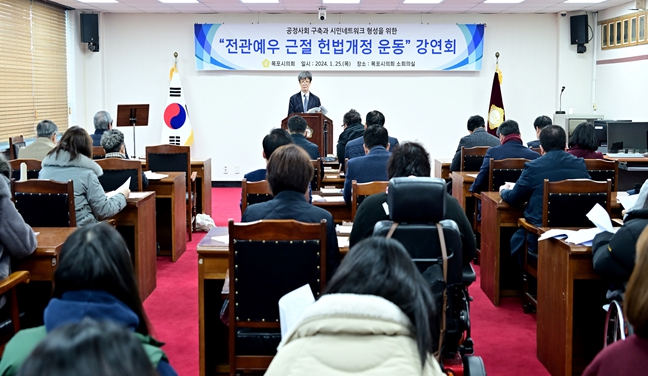 또한, 문차복 의장은 오늘 강연에 앞서 “2024년 목포시의회는 다양한 변화와 개혁을 통해 사회적 이슈를 시민들과 함께 고민하며 작은 목소리에도 귀 기울이는 살아 숨 쉬는 열린 의회로 한 발짝 더 나아가겠다”고 밝혔다.