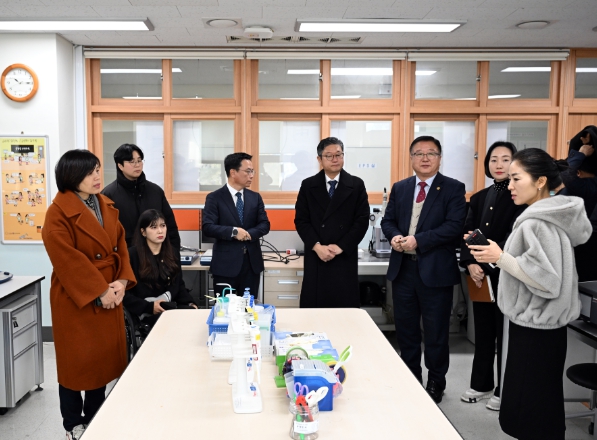 오전에 방문한 세종과학예술영재학교에서는 학교의 역점 및 특색사업 등 학교현황, 교육과정 전반과 최근의 수상실적을 보고·청취 했으며, 학교 융합창작실 등 주요 시설을 살펴보는 시간도 가졌다.
