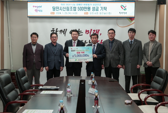 이날 전달식에는 오성환 당진시장, 당진시산림조합 김주백 조합장, 이동병 상무, 임충빈 과장, 구본휘 과장 등이 참석했다.