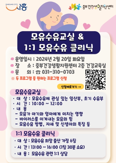![]() 시흥시 중부건강생활지원센터, 모유수유 교실 및 클리닉 운영 |