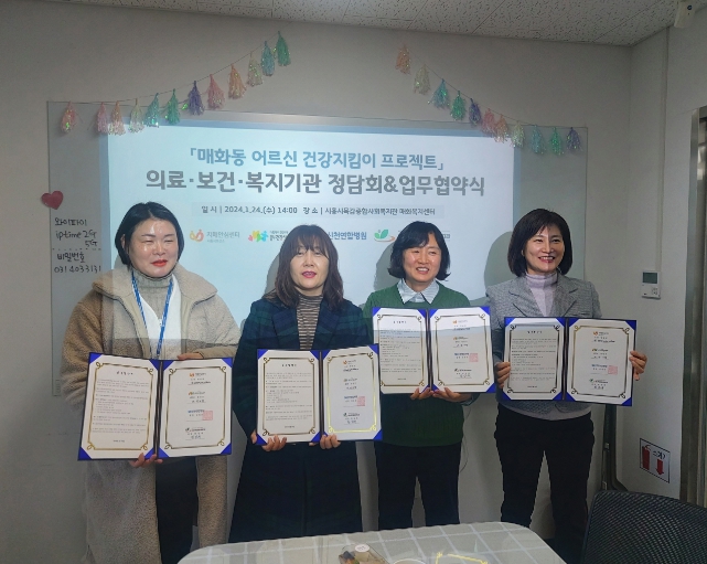 이날 체결된 협약의 주요 내용은 ▲매화동 내 건강 취약계층에 대한 돌봄 안전망 구축 및 프로그램 연계 ▲취약ㆍ위기 주민 발굴 및 연계 ▲교육 및 슈퍼비전을 통한 실무자 전문성 강화 ▲실무자 네트워킹 강화 및 협력 등이다.