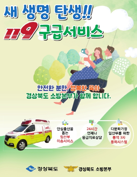 경상북도 소방본부는 출생률 감소 극복을 위한 경북형 아이 행복 시책의 하나로 ‘새 생명 탄생 119 구급서비스’를 2020년부터 운영하고 있다.
