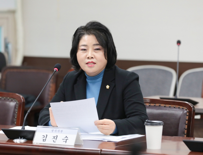 ![]() 안산시 자율방범대 지원에 관한 전부개정조례안을 대표 발의한 김진숙 의원의 모습. |