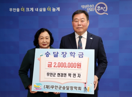 ![]() 현경면 박연자 씨, 무안군 승달장학금 200만 원 기탁 |