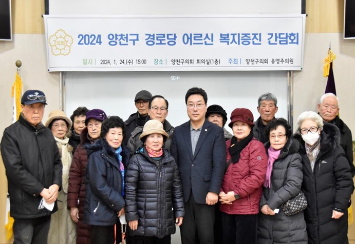 유영주 의원은 “초고령사회에 부합하는 경로당 운영을 활성화하여 어르신들의 삶의 질을 향상시키고 지역 사회와 소통하는 공간으로 전환이 필요하다”며 “이번 간담회를 계기로 구 차원의 실질적인 경로당 지원 정책을 마련하고 어르신들의 건의를 수용하여 부족한 부분을 개선하겠다”고 의지를 밝혔다.