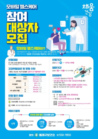 ![]() 부산 동래구 보건소, '2024년 모바일헬스케어' 참여자 모집 |