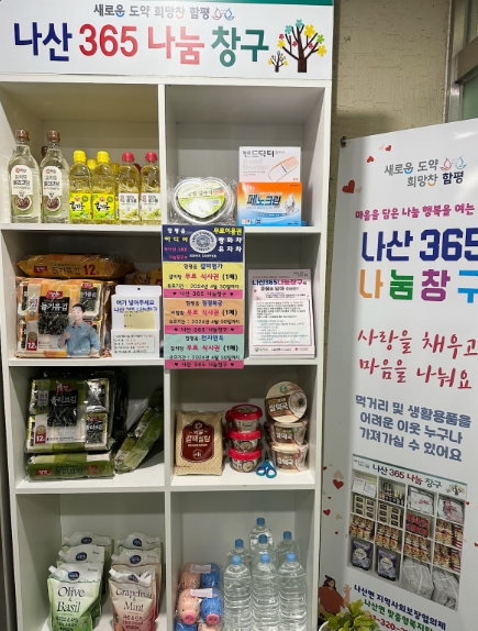 작년부터 예산 지원 없이 주민들의 자발적인 참여만으로 운영 중인 ‘나산 365 나눔창구’는 관내업체의 후원을 받아 식·생활용품 지원이 필요한 어려운 이웃들이 자유롭게 이용할 수 있도록 창구를 설치, 이웃이 이웃을 돌보는 밀착형 돌봄체계를 구축해왔다.