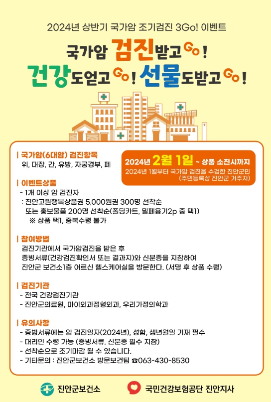 ![]() 국가암 검진받Go! 건강도얻Go! 선물도받Go! |