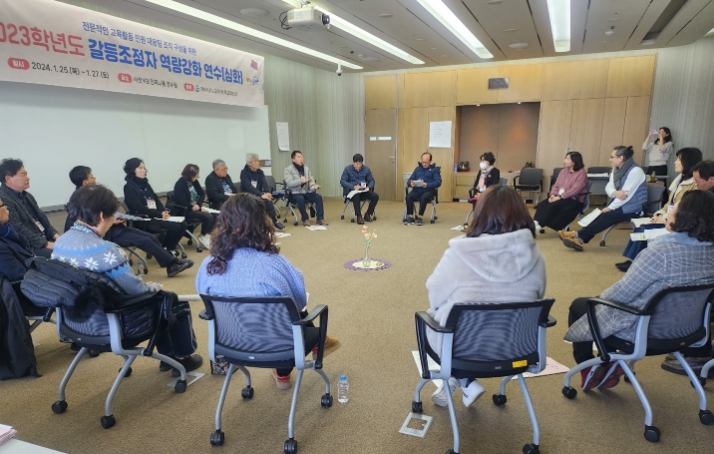 이번 심화 연수 참여자는 교육지원청별로 위촉된 갈등 조정자로 지난해 12월에 진행한 기본 연수와 연계하여 2박 3일(20시간) 열린다.