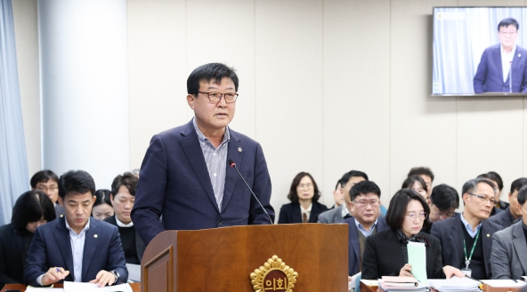 ![]() 26일 신승철 의원이 제377회 임시회 제4차 기획행정위원회 회의에서 대표 발의한 건의안에 대한 제안설명을 하고 있다. |