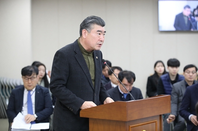 ![]() 최명수 도의원이 지난 1월 24일 제377회 임시회 교육위원회에서 제안설명을 하고 있다. |