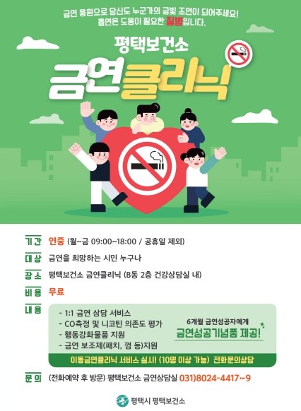 ![]() 평택시 보건소, ‘흡연자 금연 집중지원 기간’ 운영 |