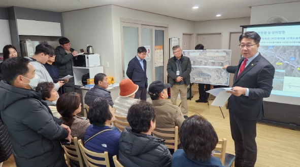 지난해 9월 집중호우로 경계휀스에 토석, 유목 등 부유물이 걸리면서 용호천이 범람함에 따라 농경지와 농기계 침수 등 재산피해가 발생했고, 1차적으로 파손된 제방과 도로를 복구했으나, 향후 반복적 침수 피해를 대비하기 위해 둑 쌓기, 하천 폭 넓히기, 교량 재가설(3개소) 등의 공사를 진행하는 사업으로 주민들이 체감할 수 있도록 설명하고 사업에 대한 주민들의 궁금증을 해소하고 순으로 진행됐다.