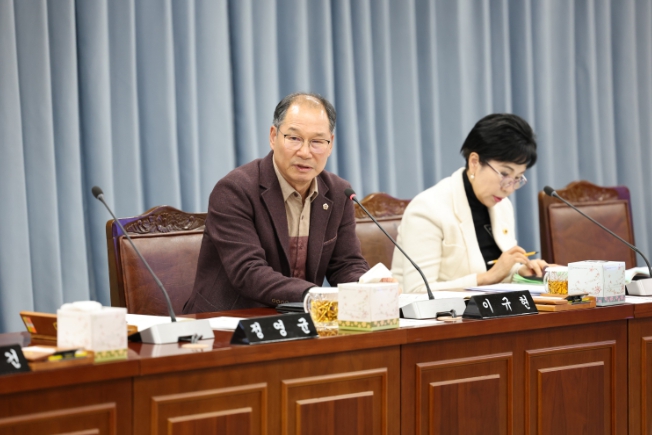 ![]() 이규현 도의원이 지난 24일 농업기술원·농축산식품국 업무보고에서 영농폐기물 근본적인 장기대책 마련 등 현안 전반에 대해 질의하고 있다. |