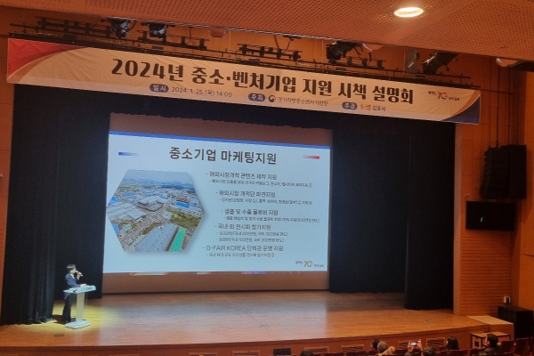 ![]() 김포시가 지난 1월 25일 김포아트홀에서 ‘2024년 중소벤처기업 지원 시책설명회’를 개최했다. |