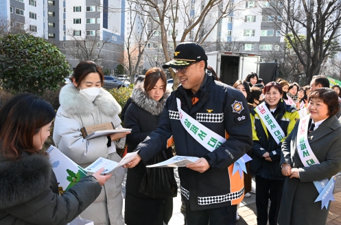 이날 캠페인에는 김재병 소방본부장을 비롯한 소방공무원과 의용소방대원 80여 명이 모여 김해시 율하동 일원에서 아파트 화재 시 올바른 피난행동요령의 중요성을 알렸다.