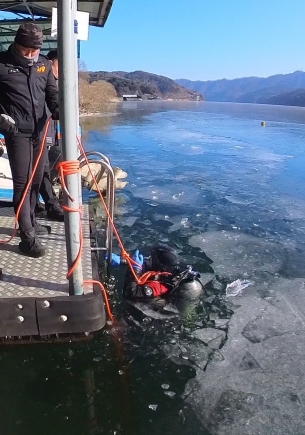 가평소방서 119구조대원 및 수난구조대원 전원이 참여한 이번 동계수난구조 훈련은 동절기 내수면 수난사고를 대비하고 구조대원의 수난사고 대응 및 잠수 능력 역량을 강화하기 위하여 마련됐다.