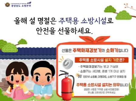 ![]() 경남소방본부, “올해 설 명절은 주택용 소방시설로 안전을 선물하세요” |