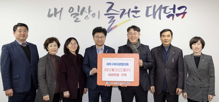 서용원 대덕구복지관협의회장은 “갑작스러운 사고로 어려움을 겪고 있을 지역 이웃들을 돕고자 지역 복지관 직원들의 마음을 모아 성금을 기탁하게 됐다”라며 “피해 이웃들에게 조금이나마 위로가 되길 바란다”라고 전했다.