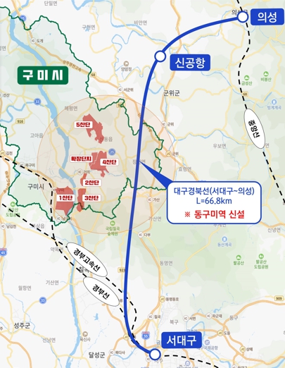 특히, 4차 철도망 계획에 반영된 대구경북 신공항철도(대구~구미~신공항~의성)는 GTX 급행철도차량을 투입하는 것으로 결정했으며, 그동안 정부 차원에서 언급되지 않았던 구미가 노선에 공식적으로 포함됨에 따라 동구미역 신설이 가시화됐다.