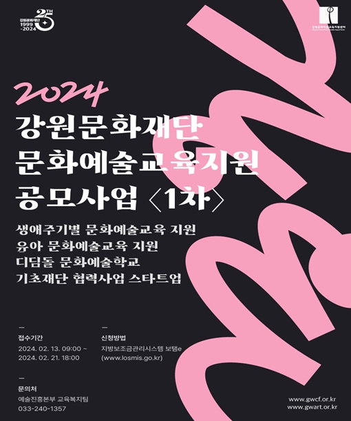 ![]() 2024년 강원문화예술교육지원 1차 통합공모 포스터 |