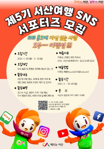 ![]() 제5기 서산여행 SNS 서포터즈 모집 홍보물 |