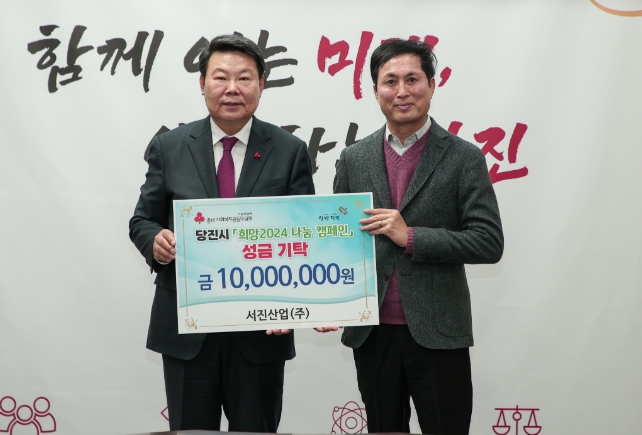 이날 이웃돕기 기부금 전달식에는 오성환 당진시장, 서진산업 류희창 대표, 방원근 본부장, 오승기 부장 등이 참석했다.