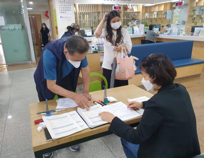 ![]() 동주민센터에서 강감찬민생일자리 신청을 하는 모습 |