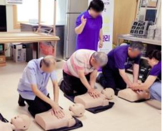 ![]() 피울경로당에서 심폐소생술 교육을 하는 모습 |