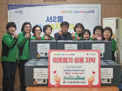 서2동 새마을부녀회는 매년 반찬, 김치 나눔, 이웃돕기 성품 기탁 등 관내 취약계층을 위해 많은 활동을 하며 따뜻함을 전하고 있다. 기탁된 김 50박스는 관내 취약 계층에게 배부할 예정이다.