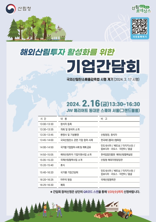 ![]() 해외산림투자 활성화를 위한 기업간담회 개최(포스터) |