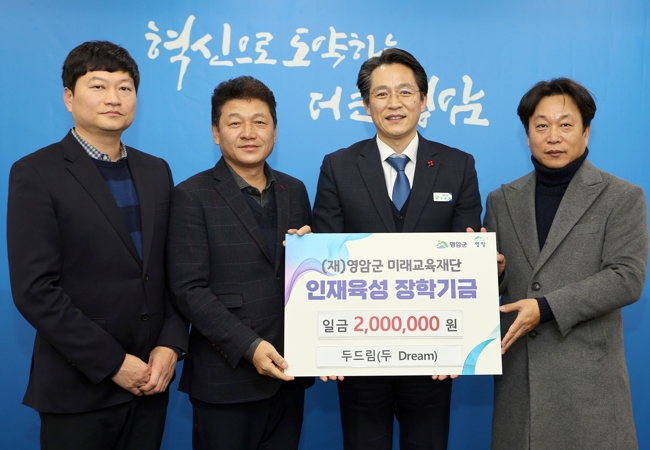지난 26일 자선단체인 ‘두드림’과 영암아리랑로타리클럽이 영암군청을 방문해 각각 200만원과 100만원을 지역인재 육성에 써달라며 (재)영암군미래교육재단에 기탁했다.