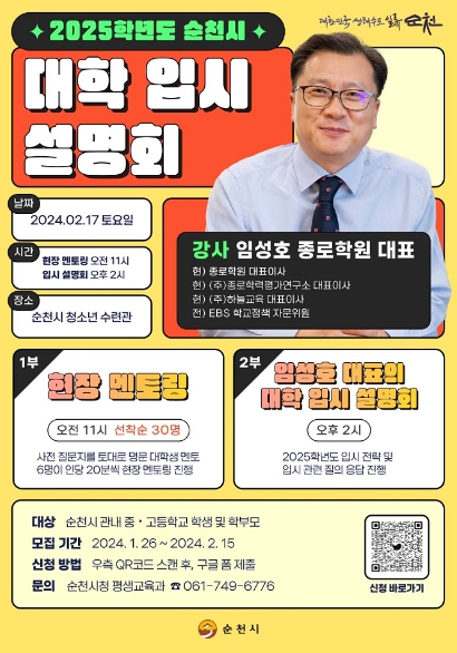 시 관계자는 “2025학년도는 통합 교육과정 취지에 따른 선택과목 필수 반영 폐지 대학이 늘어나 고민이 많은 학부모와 학생들이 대입 전략을 세우는 데 이번 설명회가 도움이 되길 바란다”고 말했다.