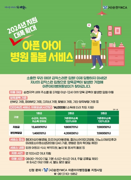 ![]() 순천시, 더 촘촘하게 '아픈 아이 병원돌봄 서비스' 확대 강화 |