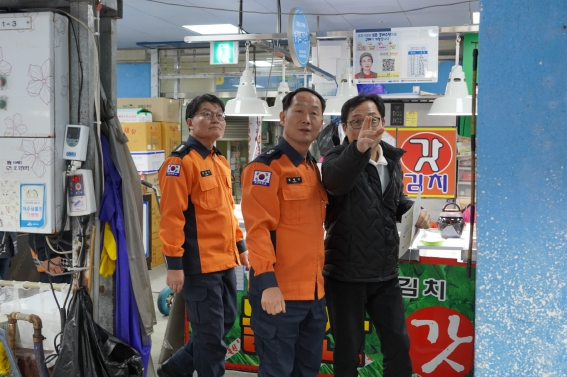 홍영근 본부장과 박원국 여수소방서장은 상인회 관계자로부터 시장 현황 및 안전대책을 청취한 후 시장 곳곳을 둘러보며 화재 위험요소 유무를 파악했다.