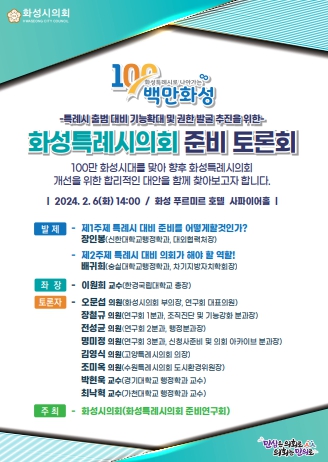 ![]() 화성특례시의회 준비토론회 웹자보 |