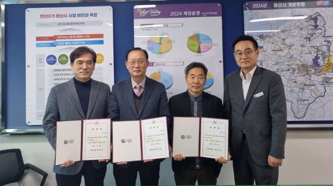 ![]() (왼쪽부터) 박수현 자문위원, 김필섭 자문위원, 장문석 자문위원, 오채환 아산시 기획경제국장 |