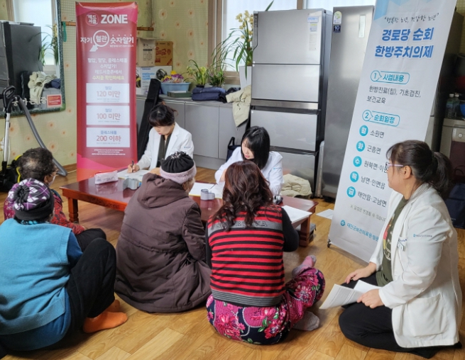 군은 2022년 9월부터 보건의료원 소속 한의과 공중보건의 5명 등으로 팀을 구성, 경로당 한 곳당 매주 1회씩 4회 이상 방문해 환자의 치료 경과를 살피고 추가 조치를 시행하고 있다.