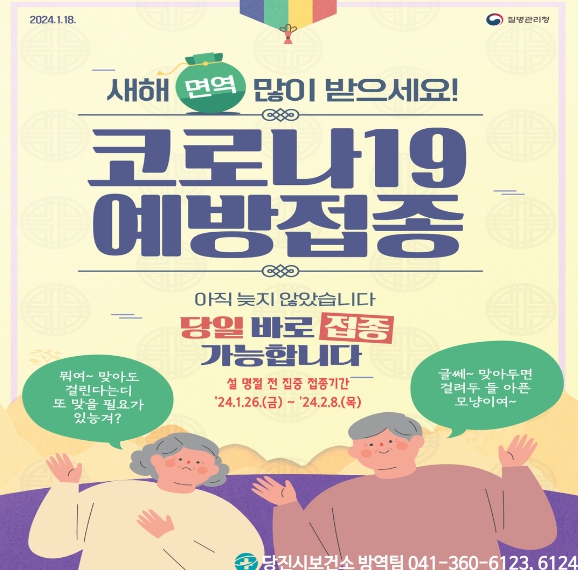 박종규 당진시 보건소장은 “코로나19 변이 바이러스가 지속해서 확산되고 있는 상황에서 설 명절을 대비해 가족과 친지를 만나기 전 코로나19 예방접종을 하고 안전한 연휴를 보내길 바란다”라고 전했다.