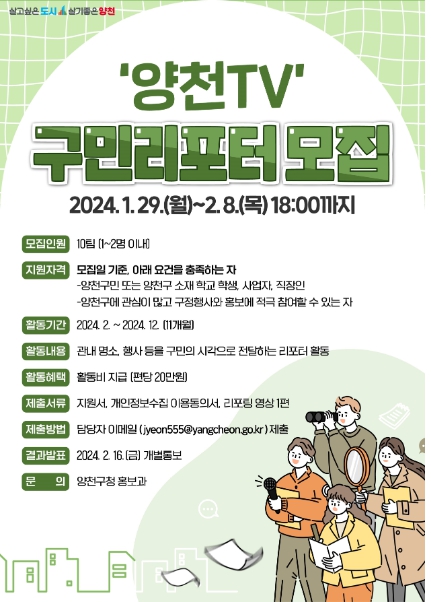 ![]() 양천구 '양천TV 구민 리포터' 홍보 포스터 |