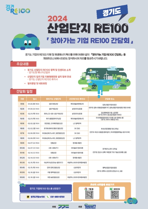 ![]() 2024년 경기도 「산업단지 RE100」 찾아가는 기업 RE100 간담회 포스터 |